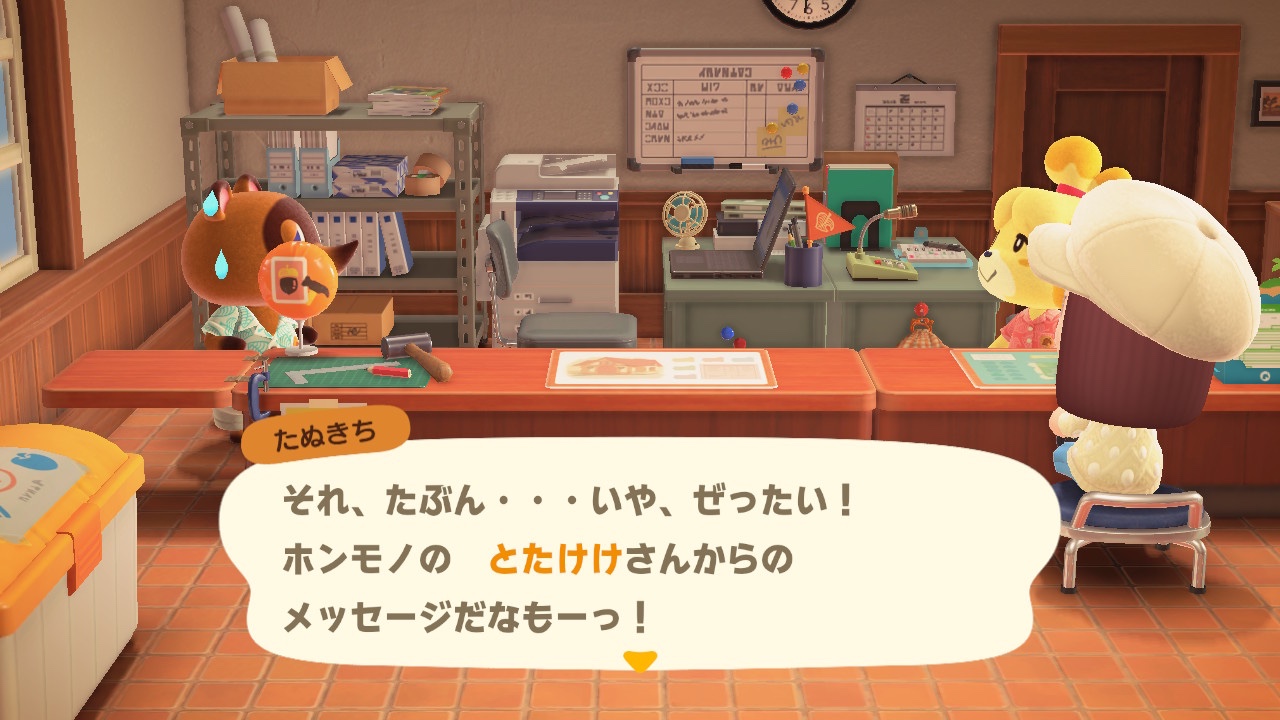 しずちゃんに島の評判を聞いたら、Kさんからのお手紙があったようでたぬきち大慌て。Kさん……Kプロジェクト……とたけけプロジェクト……。