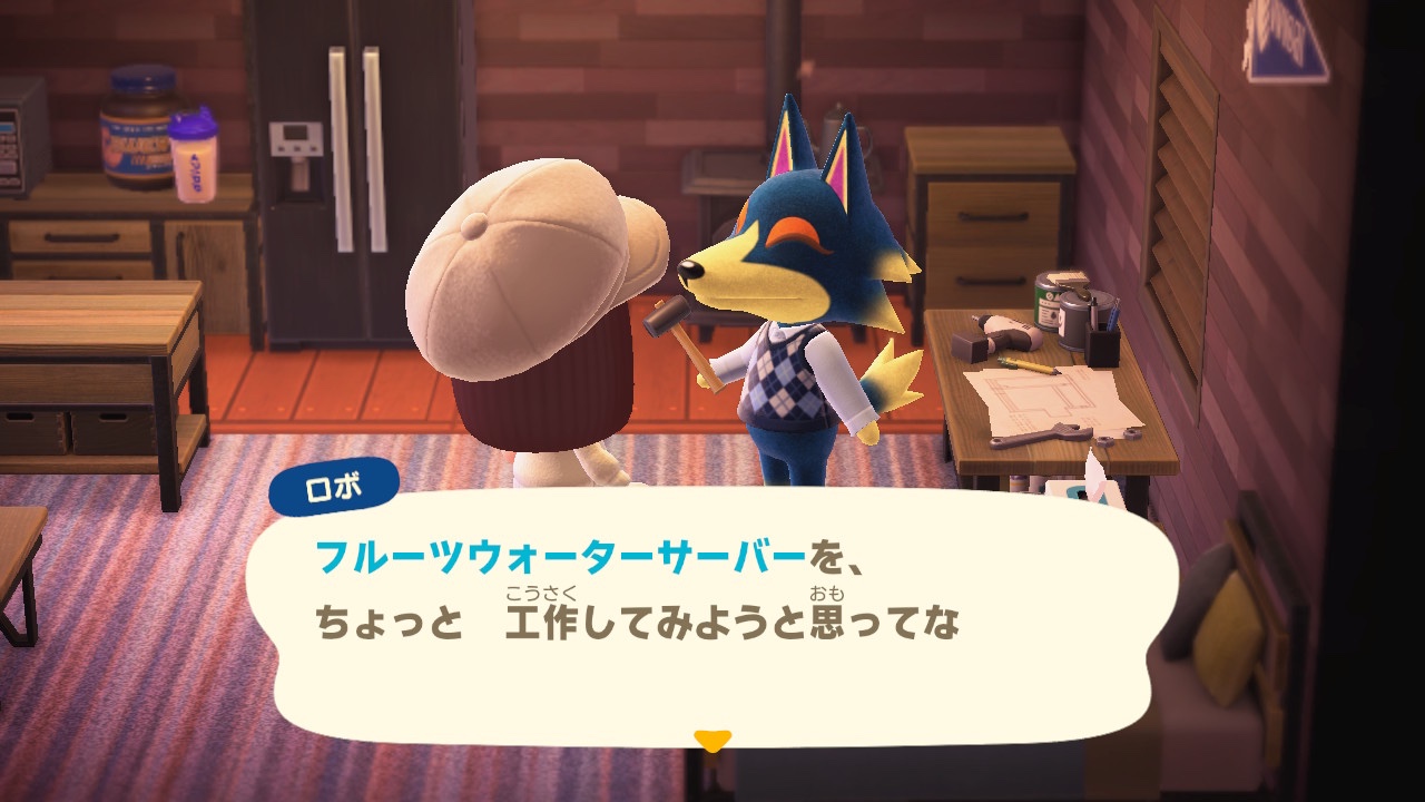 サンデーの家にあったフルーツウォーターサーバーが欲しくて欲しくて、海岸をうろついてビンを集めたり住民の家に押し掛けたりしてたけど、やっと!やっとだー!!