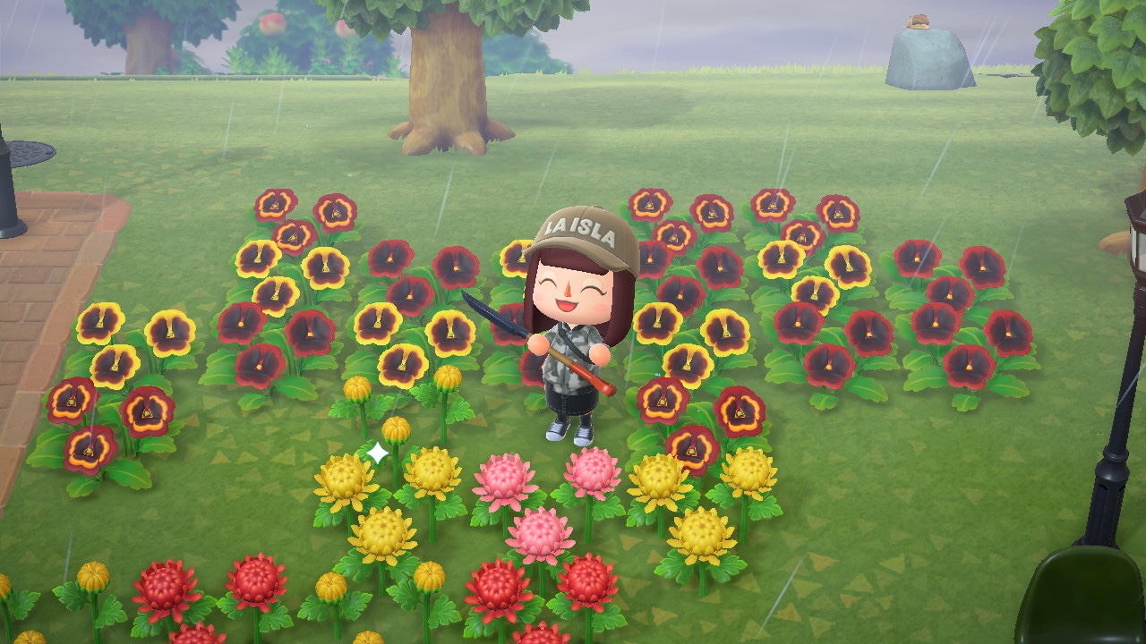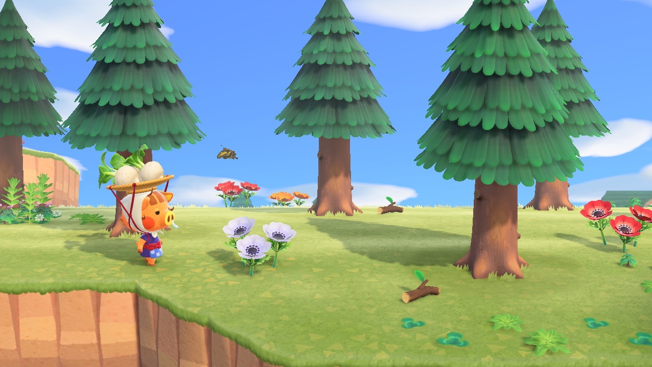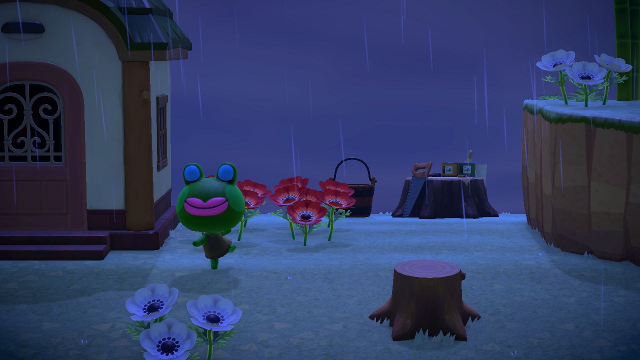 おうちも移築。なんとなくできていた崖の間の隙間スペースにぴったり。家のサイドにはとび森のときのようにピンクの花を植えて。