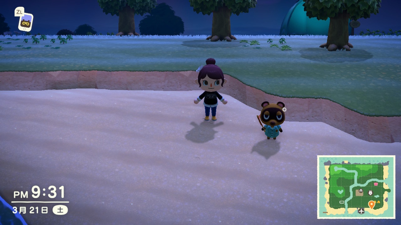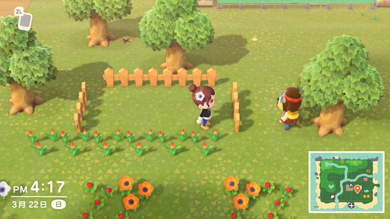 とび森のときはマイデザをガンガン使って村の整地をしたけど、今回はあまり人工的に整地をせずにいたい。森らしさを残したいので、なるべく木はそのままにしつつ通りやすいか見やすいかということも考えて伐採。