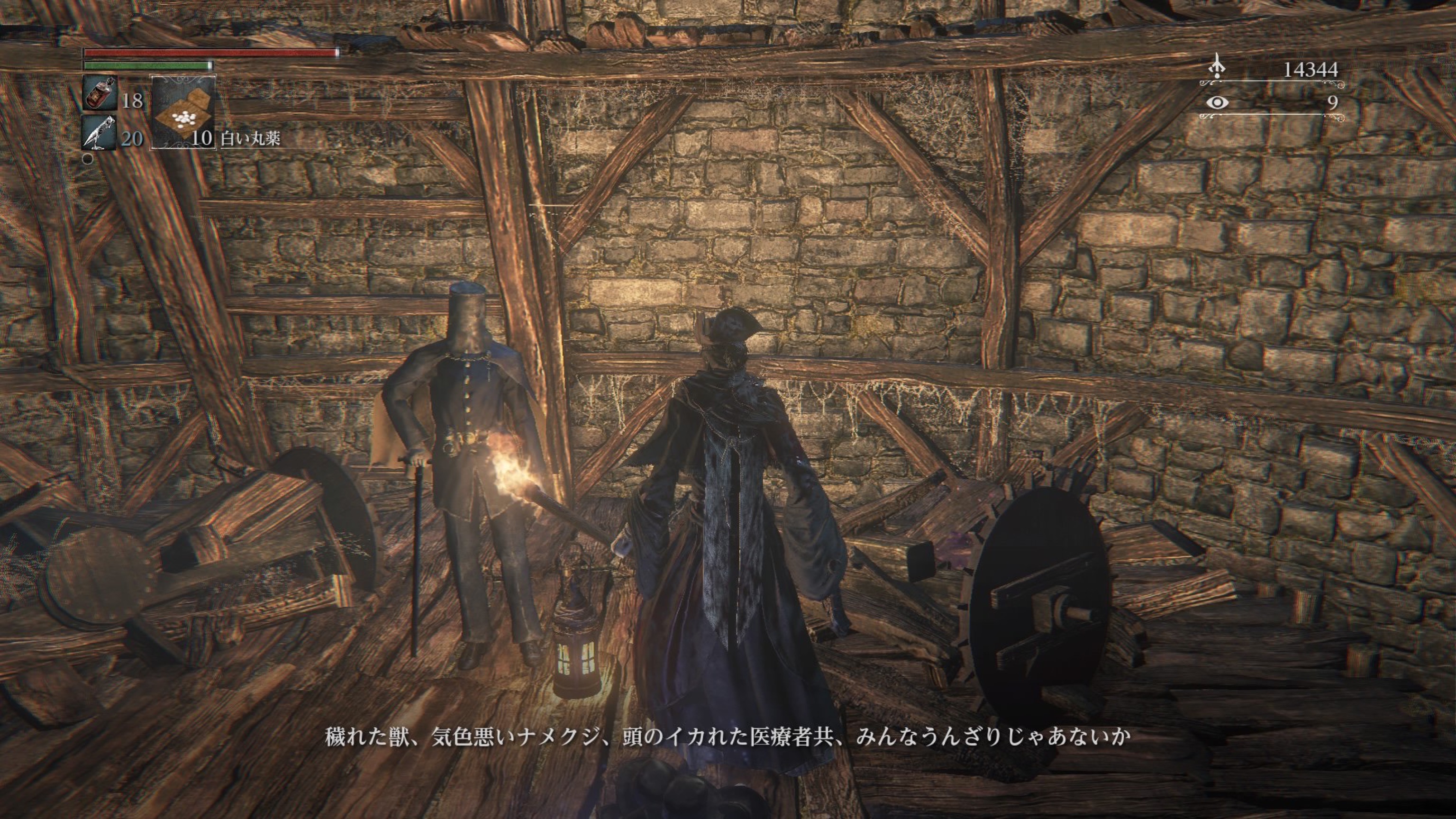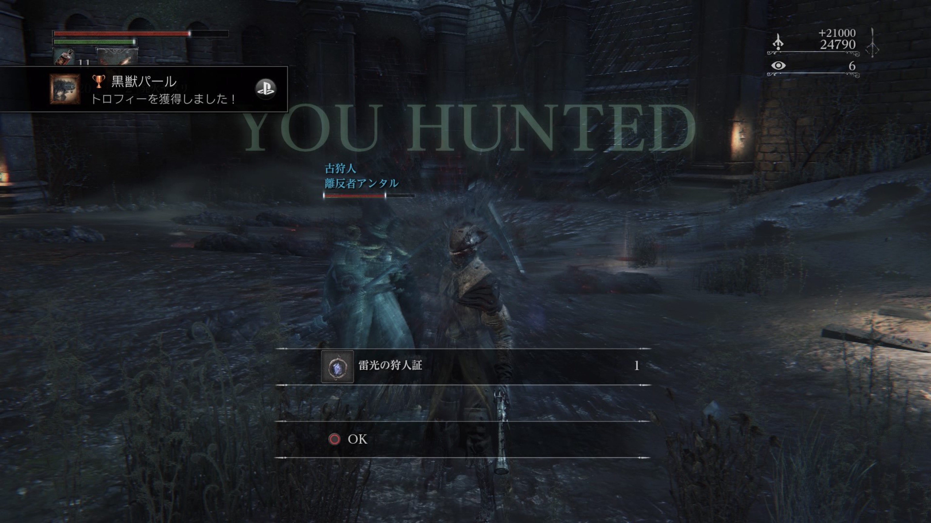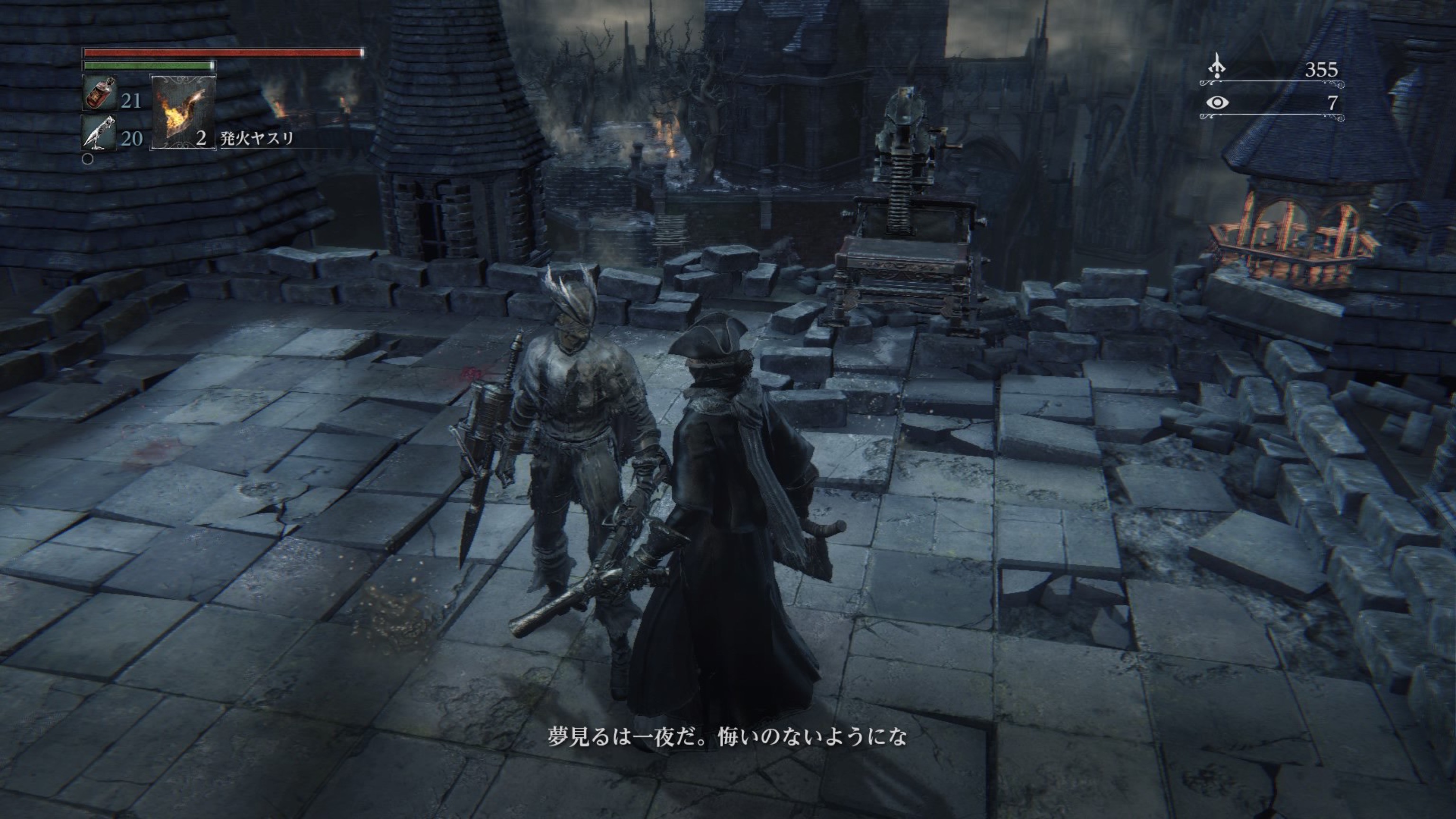 ボス前の屋根を渡っていくところに血痕があり、やっぱりみんな落ちるんだなぁと思ったら私も落ちました。ツルッとね、ツルッと…。