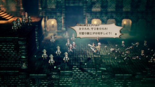 どうしてもメインPTがサイラス、オルベリク、オフィーリアの鉄板構成になってしまう。これに加えて、探索時は宝箱を開ける都合上テリオンが加わっていたのだが、ここにきてアーフェンの株が急上昇。あんまり考えてなかったので、使いにくいキャラだと思い込んでいたのだが、よく考えたら材料さえあれば毎ターンBPが回復できるってすごくね…?