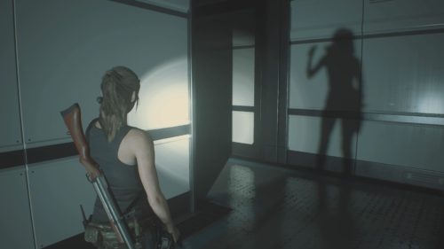 あとは音。何かが近づいてきていたり、同じフロアにいたりするのはわかるからいいんだけど、新しい場所とか新しいB.O.W.はBGMがどんどん盛り上がってくるので、それにビクビクしながら進んでた。怖い。