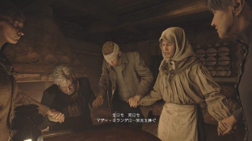 これは後にお城でちょっとだけミランダを見たらわかるのだが、彼女は黒い翼みたいなものを6枚持っている。そのまま言葉通りに受け取ると、村の人たちが生贄にしか見えないのだが………。